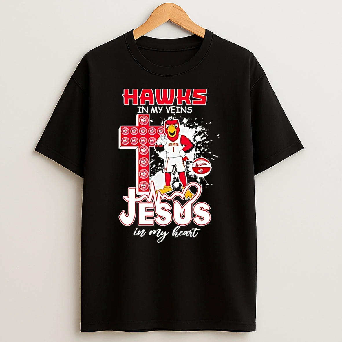 Atlanta Hawks In My Veins Jesus In My Heart Mascot T Shirt