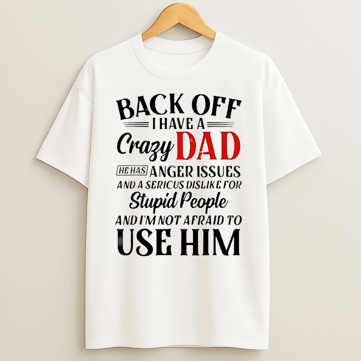Back Off I Have A Crazy Dad He Has Anger Issues And A Serious Dislike For Stupid People And Im Not Afraid Christmas T Shirt