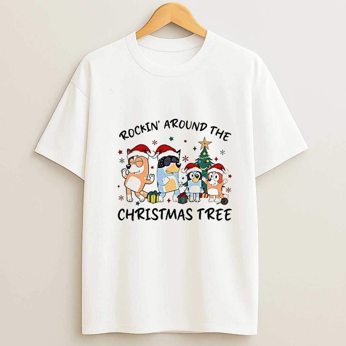 Bluey Family Santa Hat Rockin Around The Christmas Tree Merry Christmas 2025 T Shirt