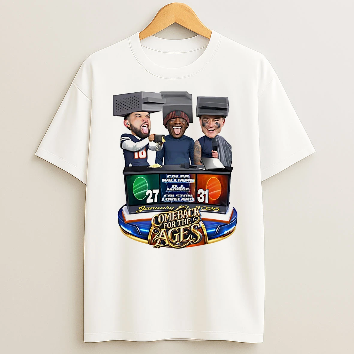 Caleb Williams Colston Loveland Dj Moore Cheese Grater Triple Caricature T Shirt