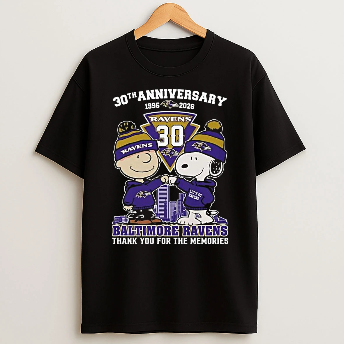 Charlie Brown And Snoopy X Baltimore Ravens 30th Anniversary 1996 2026 Thank You For The Memories T Shirt