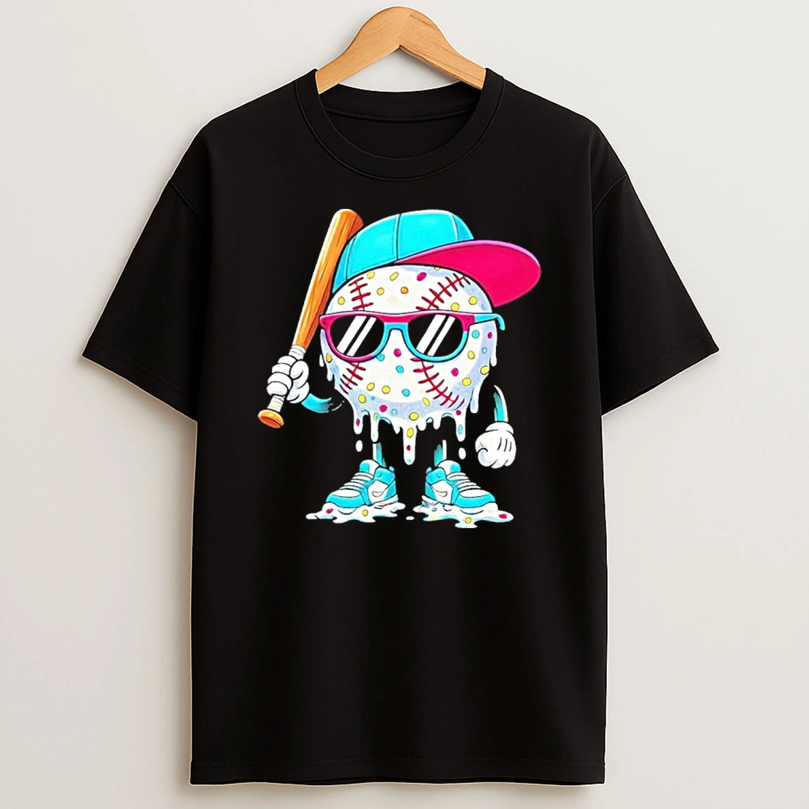 Cool Baseball Life Style Ice Cream Melting Drip Graphic T Shirt