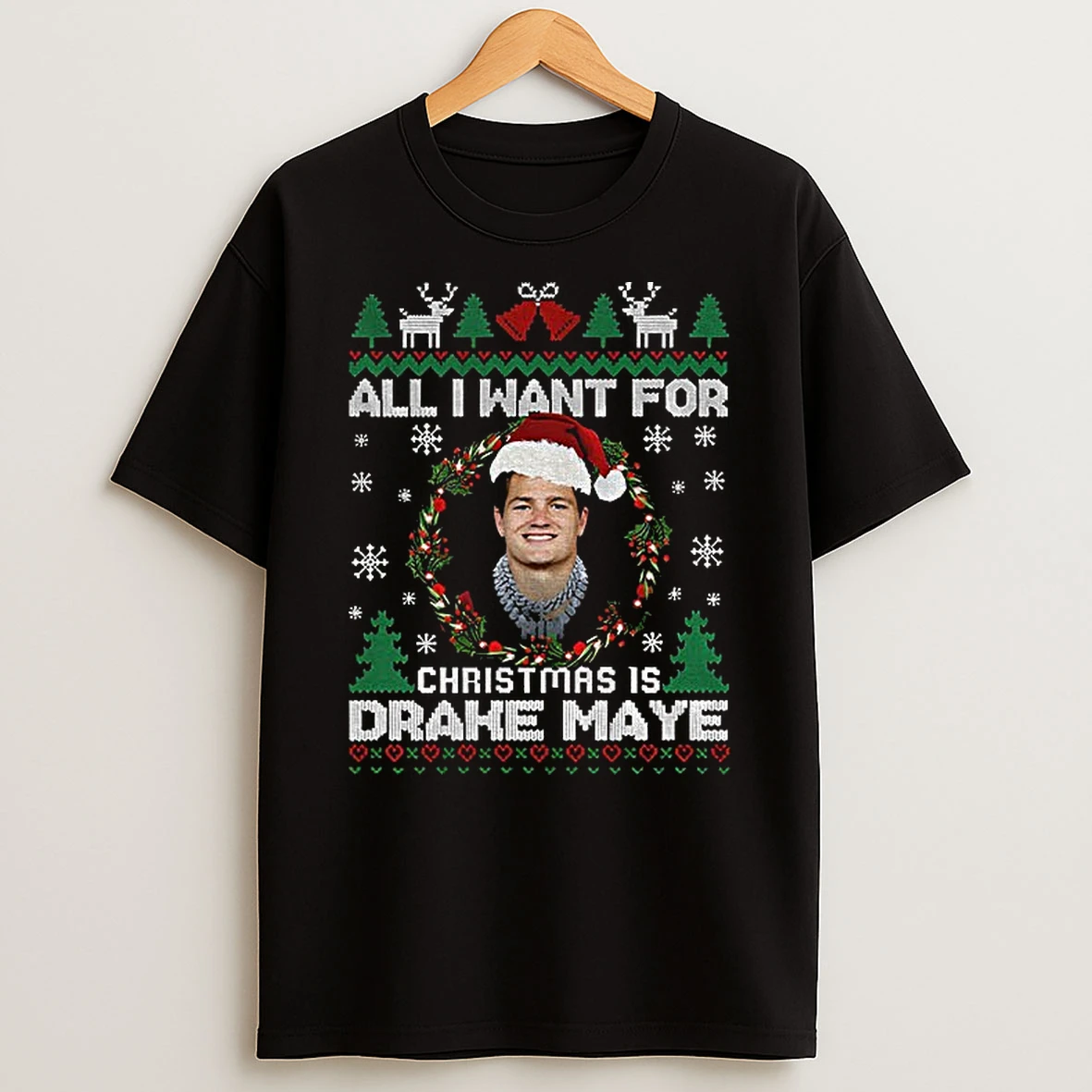Drake Maye Santa Hat New England Patriots All I Want For Christmas Is Merry Xmas T Shirt