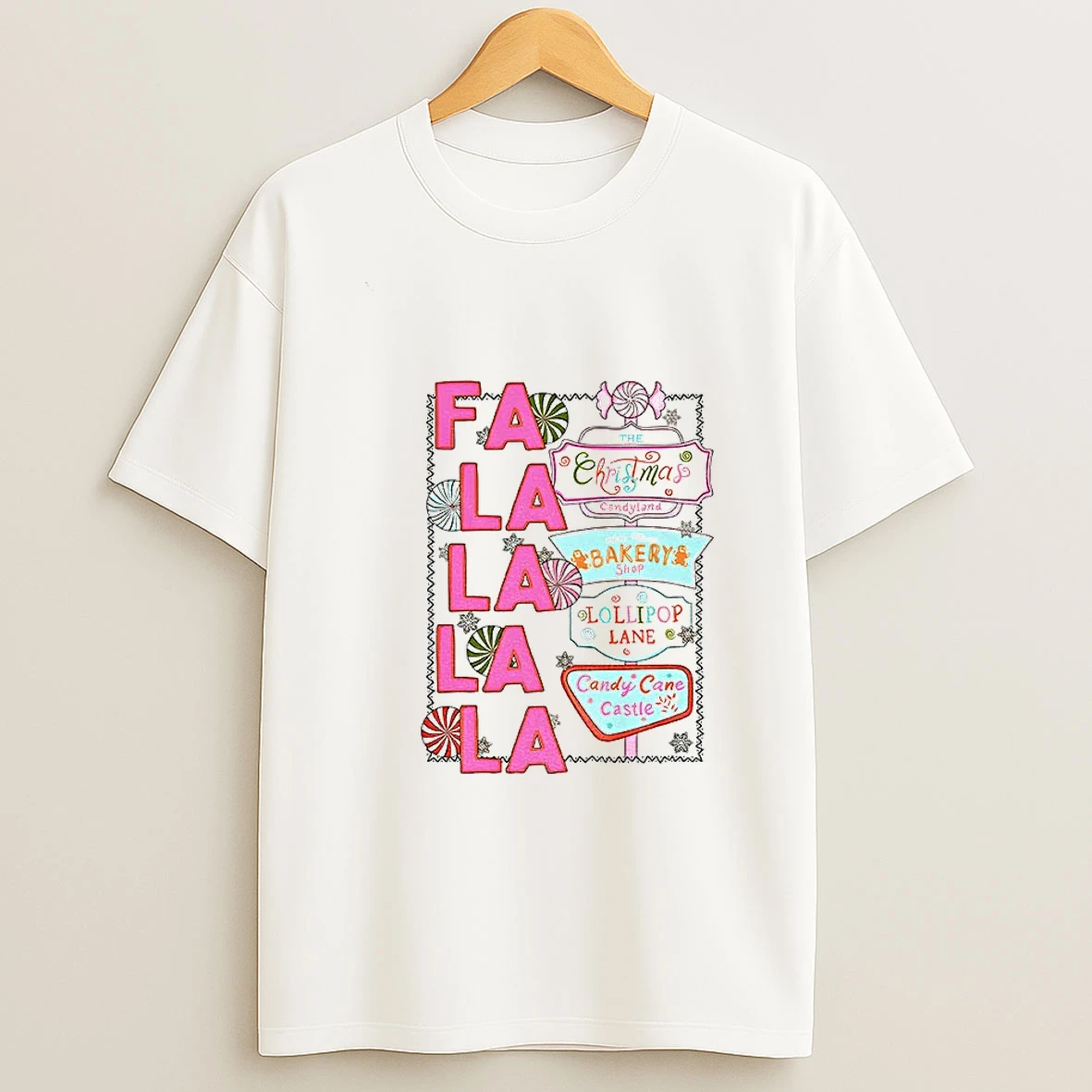 Fa La La La Candyland The Christmas Bakery Shop Lollipop Lane Candy Cane Castle Christmas Tshirt Hoodie