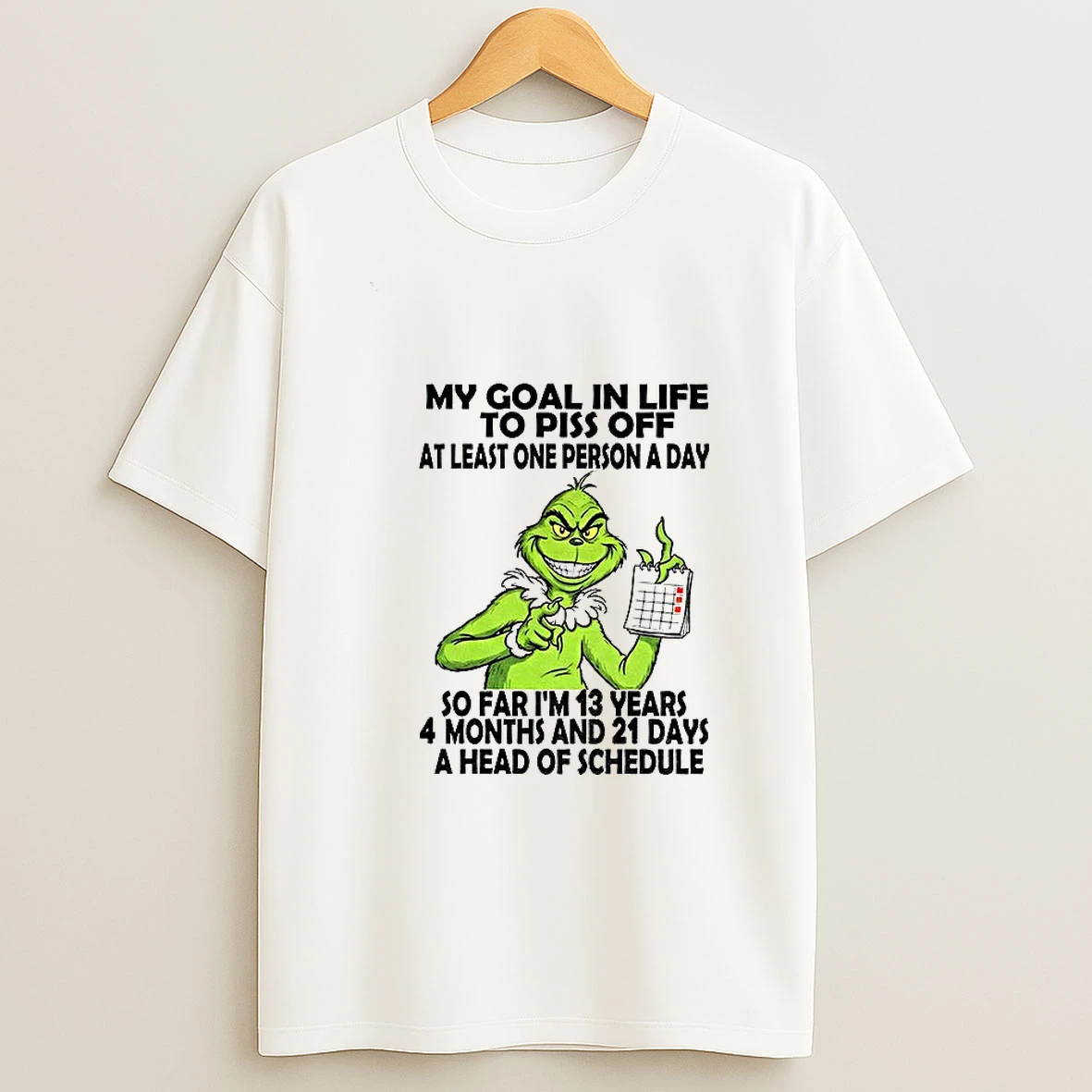 Grinch My Goal In Life To Piss Off At Least One Person A Day So Far Im 13 Years T Shirt