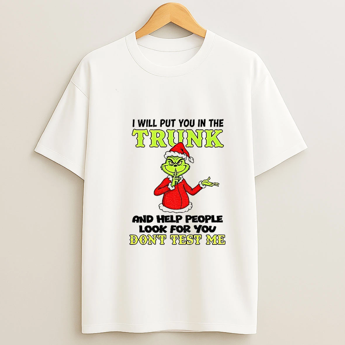 Grinch Santa I Will Put You In The Trunk And Help People Look For You Dont Test Me Christmas T Shirt