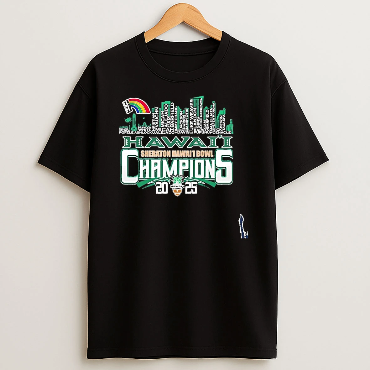 Hawaii Rainbow Warriors Skyline Players Name 2025 Hawaii Bowl Champions T Shirt