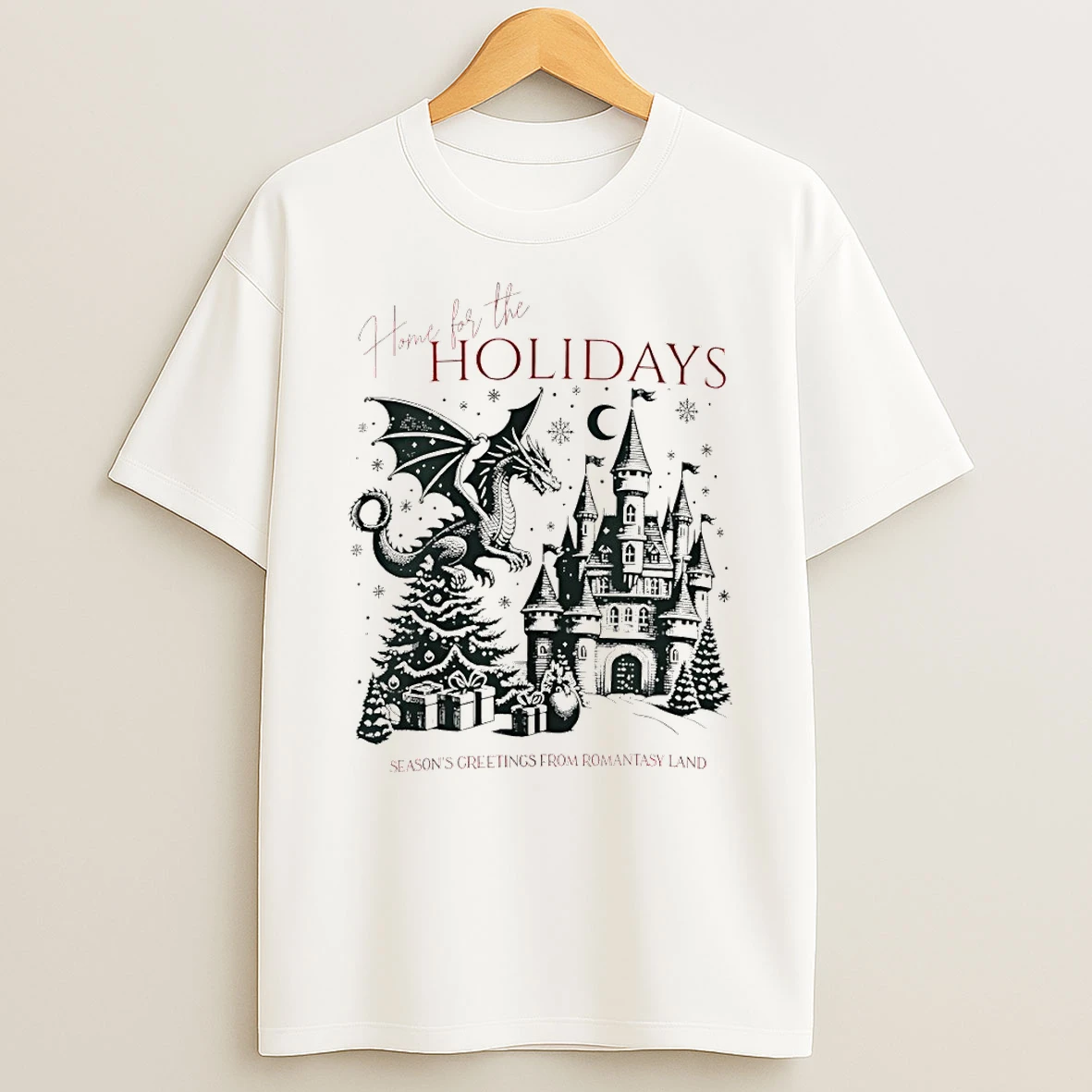 Home For The Holidays Seasons Greetings From Romantasy Land Dragon Bookish Christmas Tshirt Hoodie