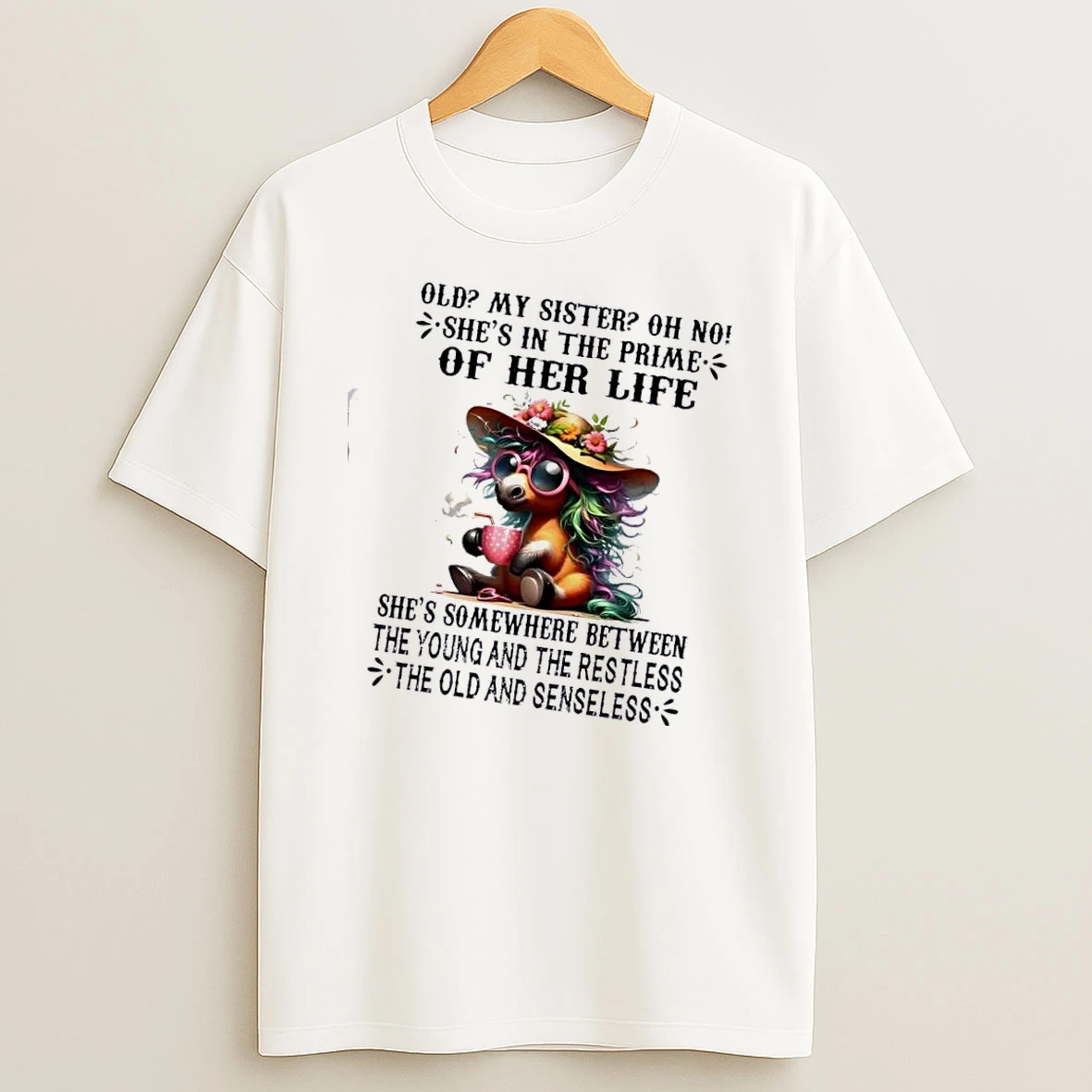 Horse Old My Sister Oh No Shes In The Prime Of Her Life Shes Somewhere Between The Young And The Restless T Shirt