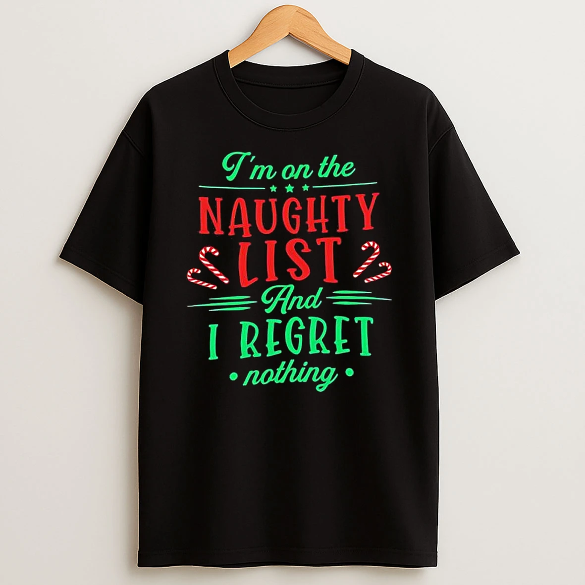 Im On The Naughty List And I Regret Nothing Christmas Graphic T Shirt