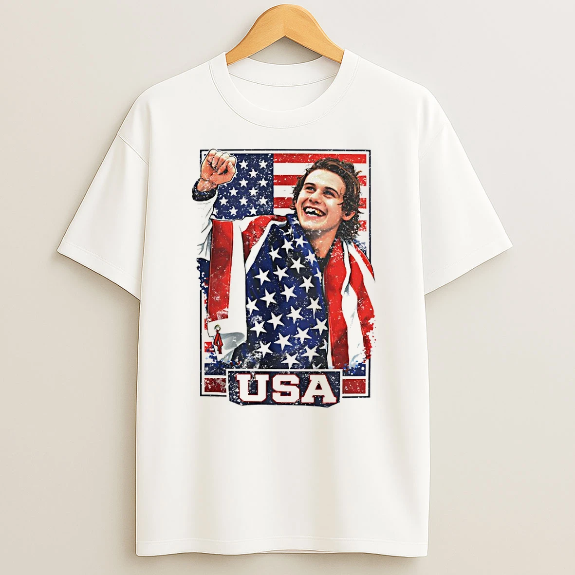 Jack Hughes Usa Gold Medal Hockey Usa Hockey American Flag Olympic 2026 Milano Cortina Vintage T Shirt