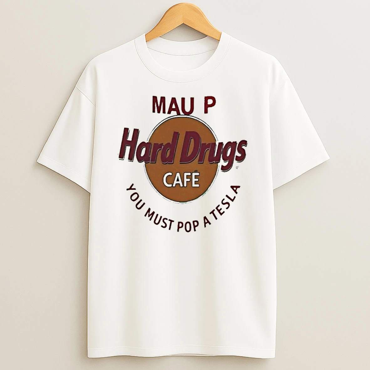 Mau P Hard Drugs Cafe You Must Pop A Tesla Parody Logo Tshirt Hoodie