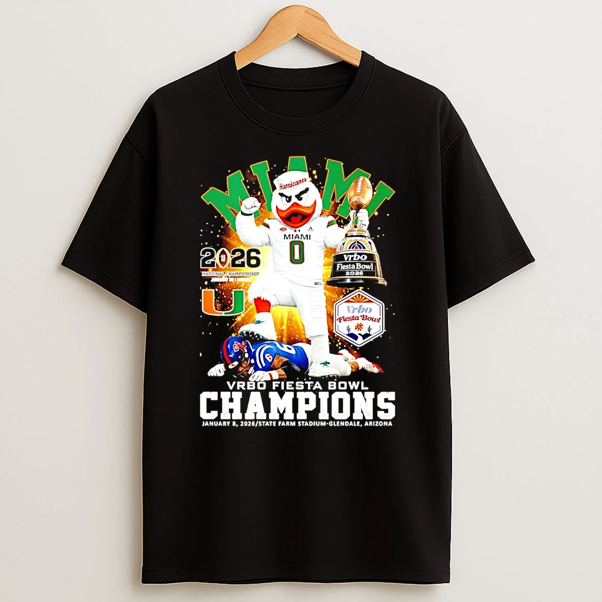 Miami Hurricanes Cfp Fiesta Bowl Champions 2026 Mascot T Shirt