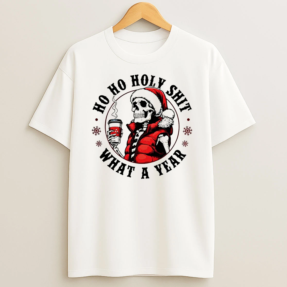 Skeleton Ho Ho Holy Shit What A Year Merry Christmas Tshirt Hoodie