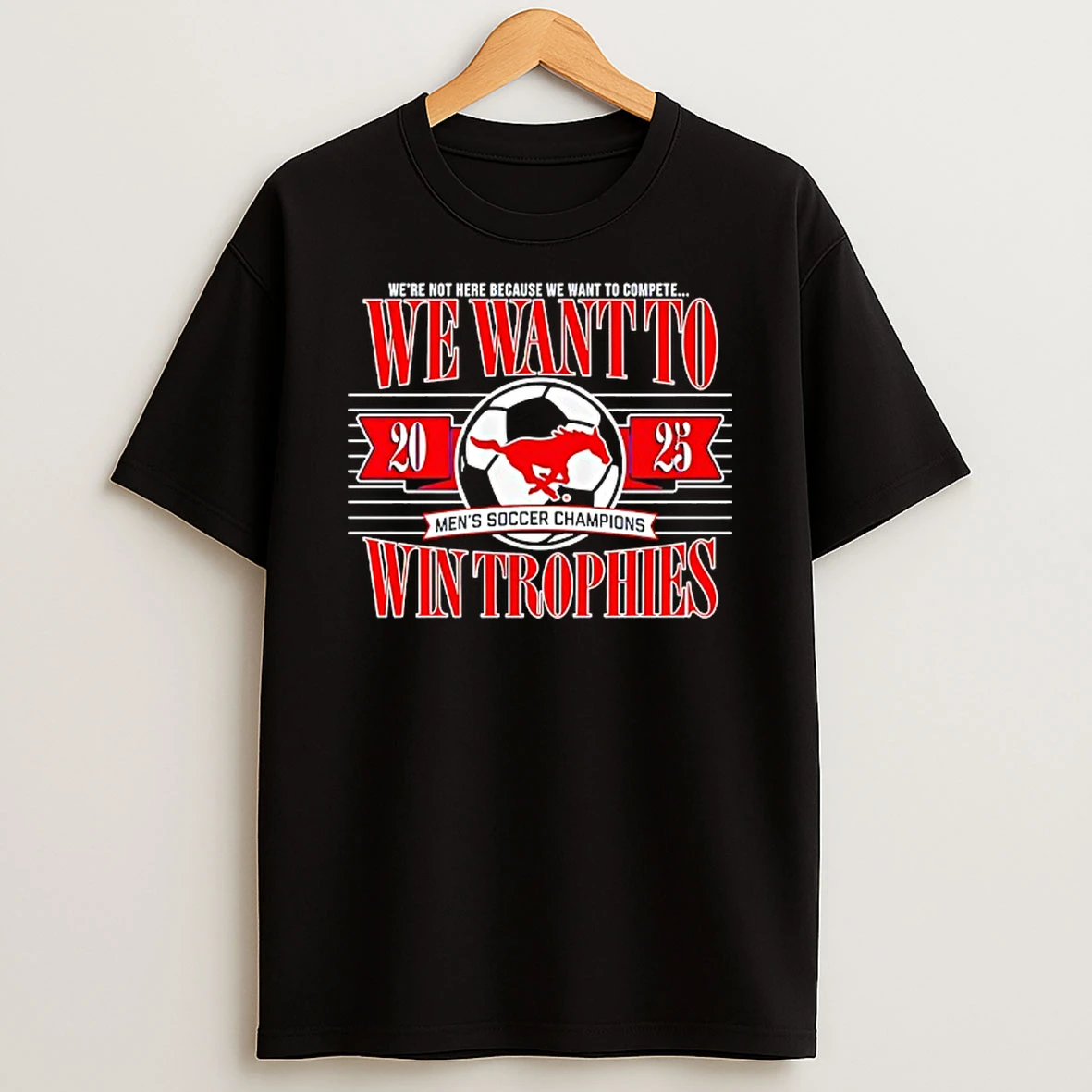 Smu Mustangs Mens Soccer Champions 2025 We Want To Win Trophies Tshirt Hoodie