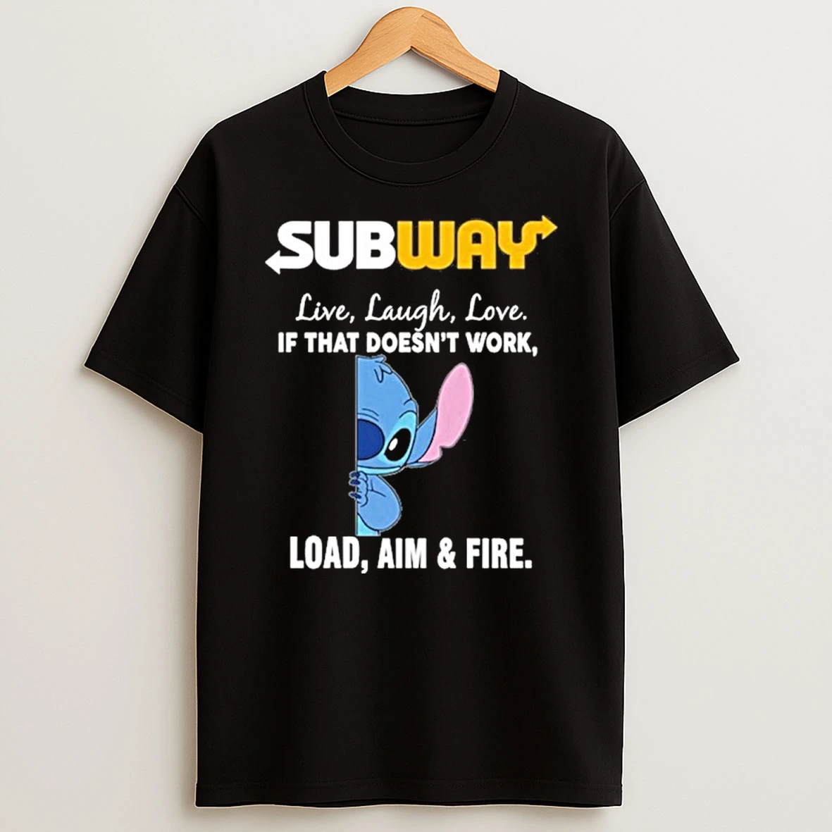 Subway X Stitch Live Laugh Love If That Doesnt Work Load Aim Fire Tshirt Hoodie