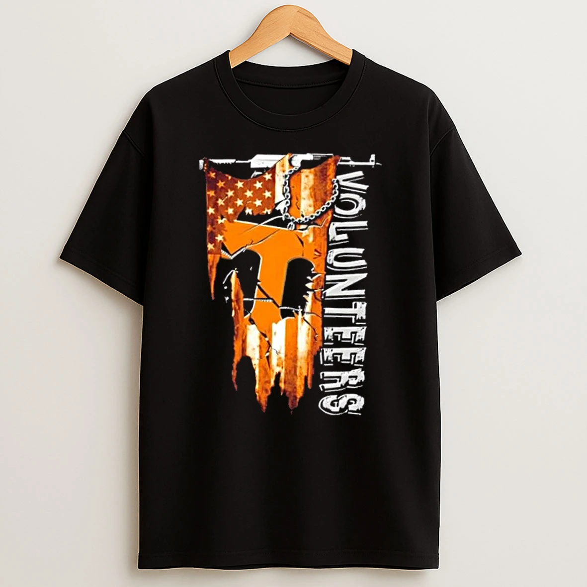 Tennessee Volunteers Football Battle Shattered Usa Flag Rip Design T Shirt
